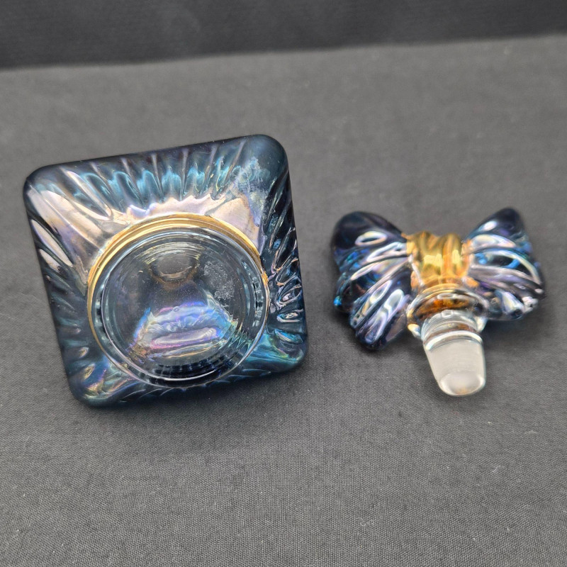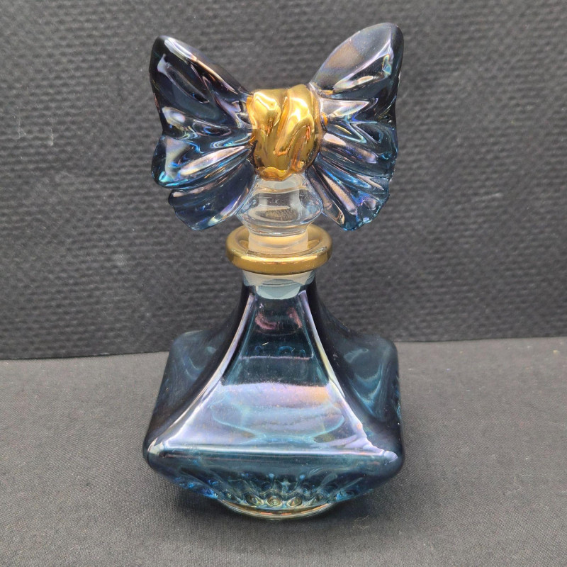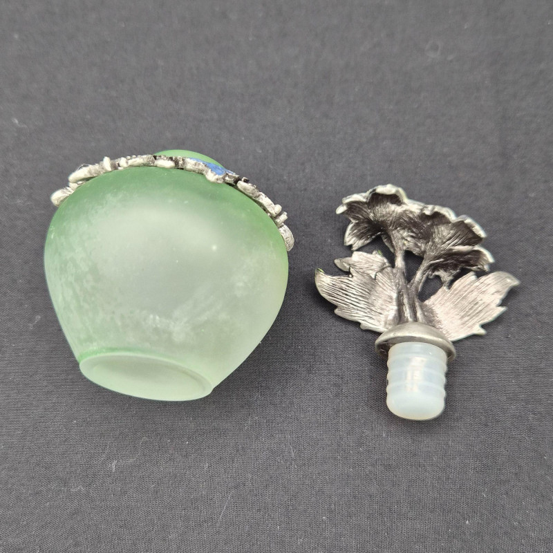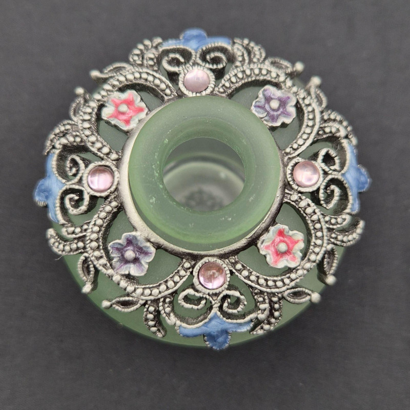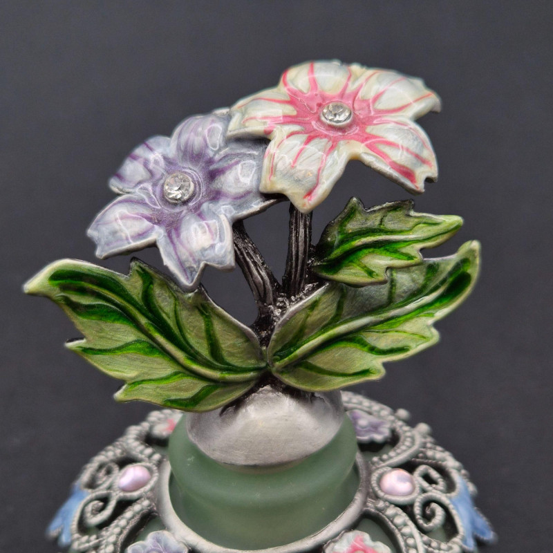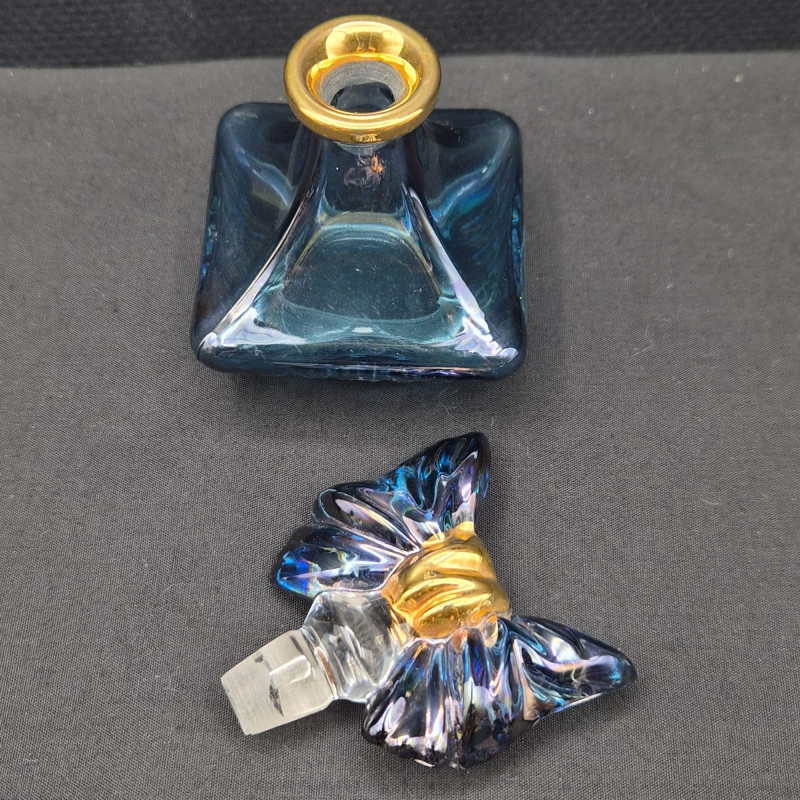 Three small vintage glass scent bottles, each with its own distinctive character: Together, these bottles create a colorful vignette of vanity glass, perfect for display, collecting, or gifting.