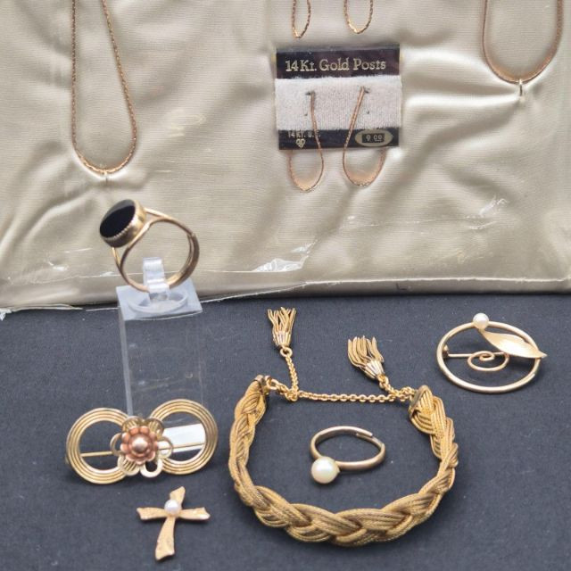 Lot # 26 - Gold-Filled Jewelry Variety with Pearls, Chains & Onyx Ring