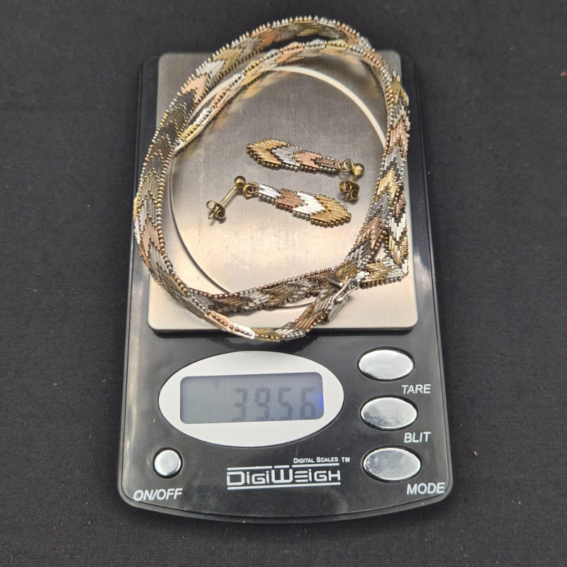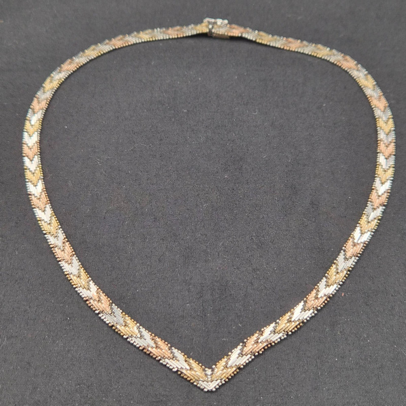 Lot # 28 - Tri-Colored Chevron Weave Sterling 925 Italy Necklace & Earrings