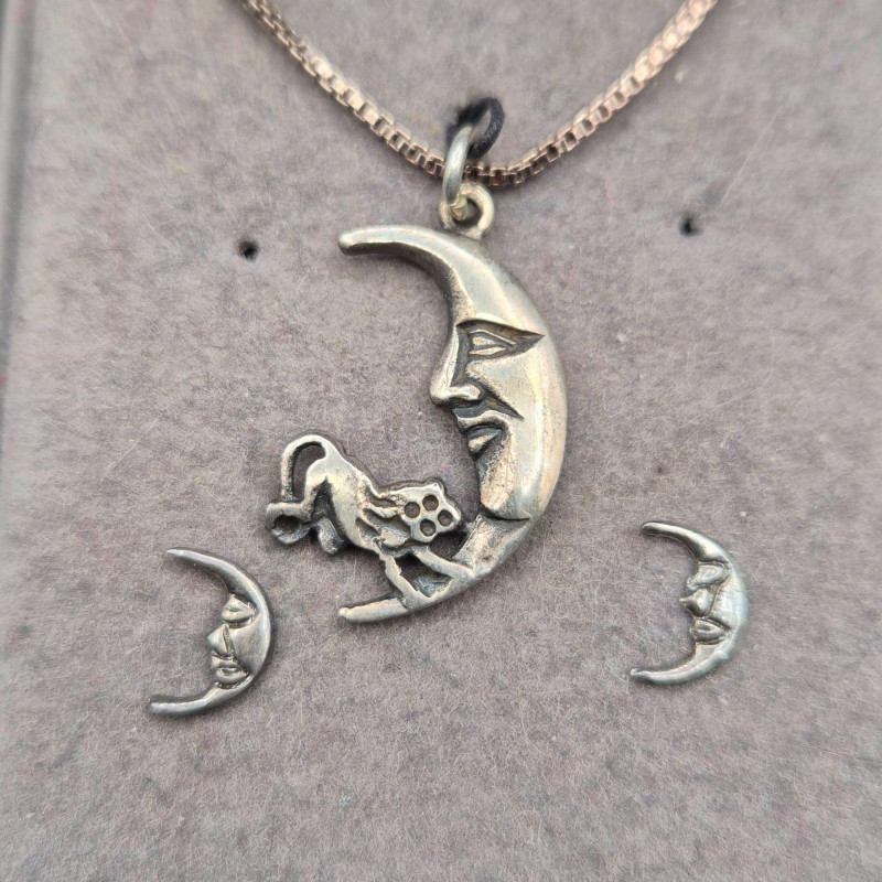 A pair of vintage boxed sterling silver (925) jewelry sets, never worn and waiting to shine. Each features a 16" chain with matching pierced earrings, offering two distinct styles: Both sets show a natural patina that can be polished to preference, preserving their vintage authenticity. Ideal for collectors, gift-givers, or anyone seeking jewelry with personality and timeless appeal.