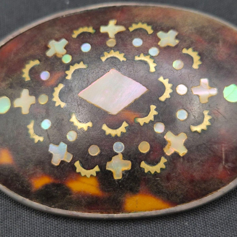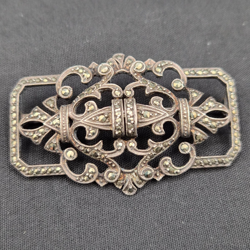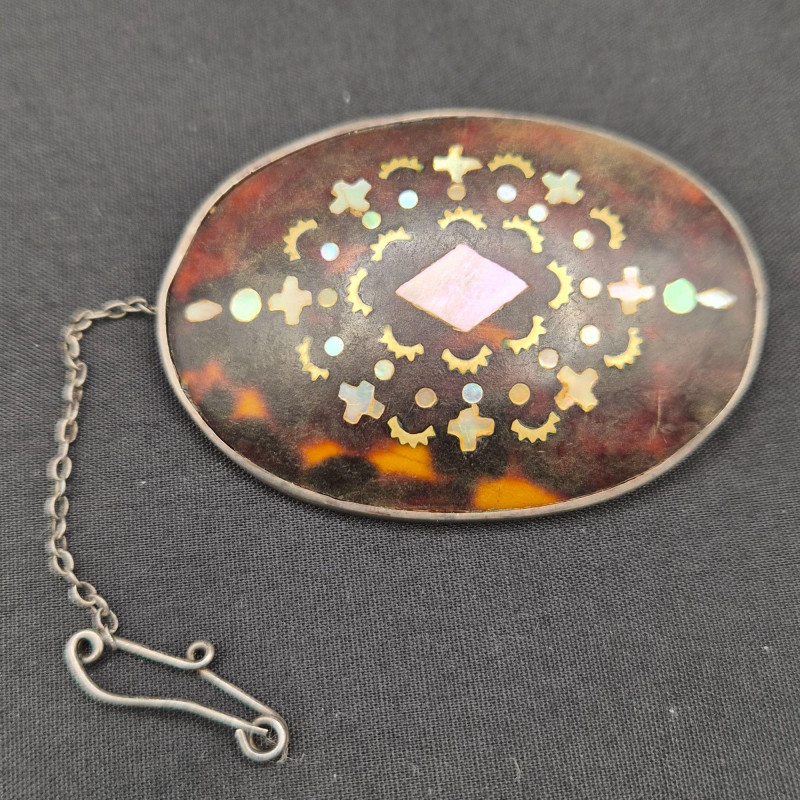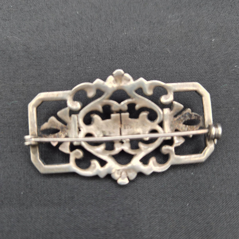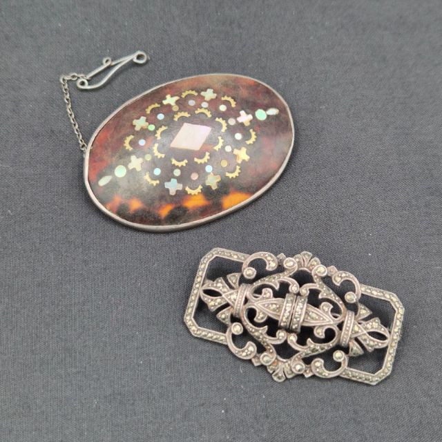 Lot # 53 - Antique Brooch Duo - Silver Marcasite & Tortoise MOP Inlay