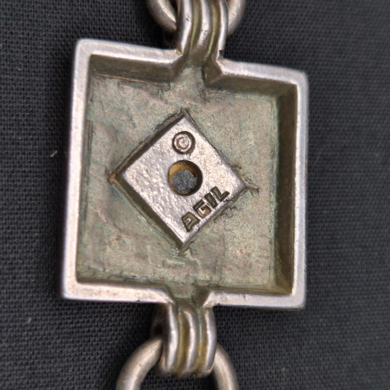 A striking designer silver panel bracelet, each decorative panel stamped AGIL for authenticity and style.