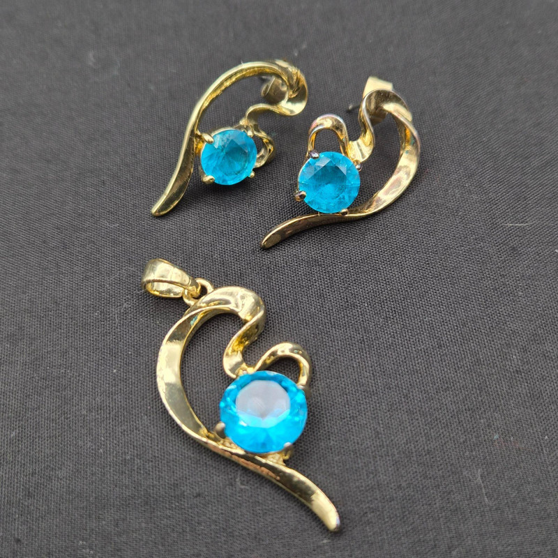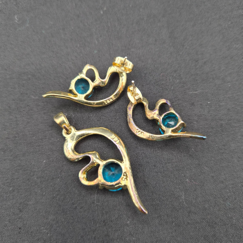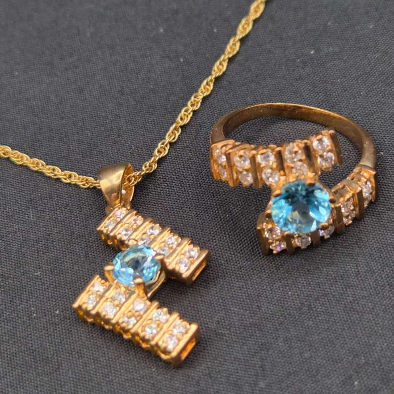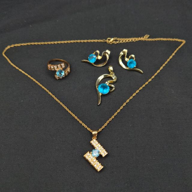 Lot # 63 - Two Blue Stone Sets - Gold Plated Necklace, Earrings, Ring