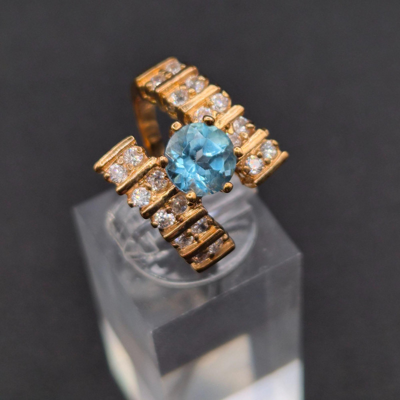 A pair of finely appointed vintage jewelry sets featuring created stones in striking blue hues: