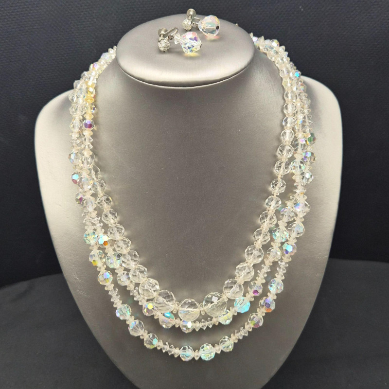 Lot # 64 - Vintage Crystals: Lisner Aurora Borealis & Clear Faceted Necklaces