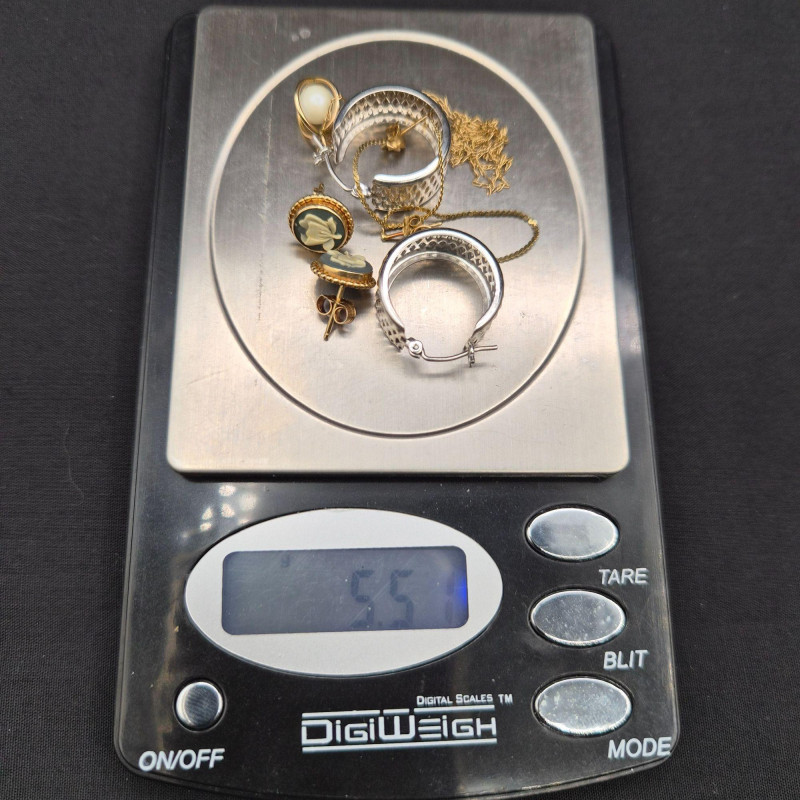 A graceful assortment of fine 14k gold jewelry, designed with delicate detail and timeless charm: Total weight: 5.5 grams of 14k gold.