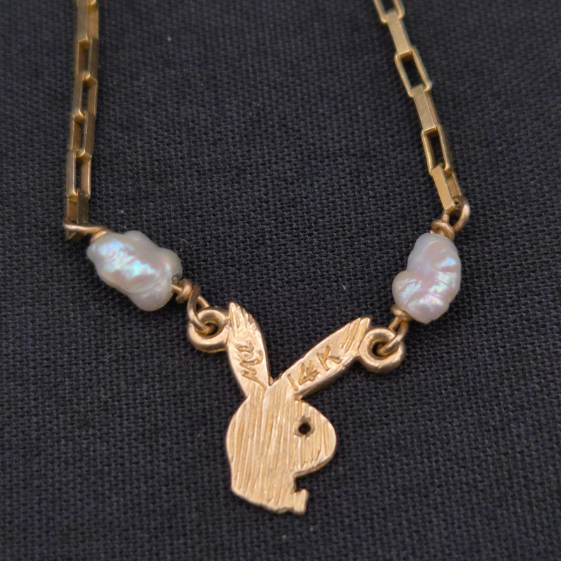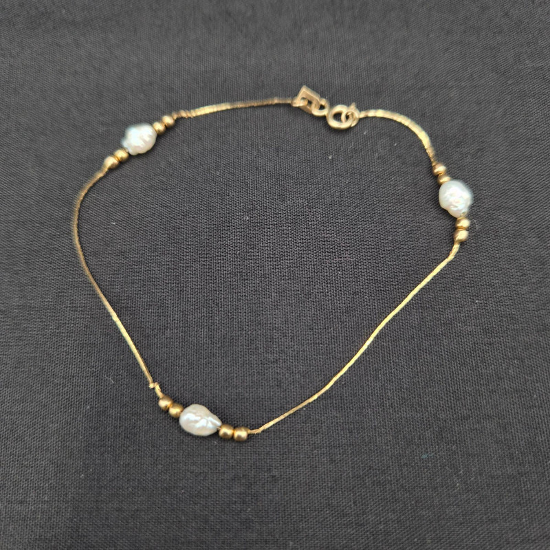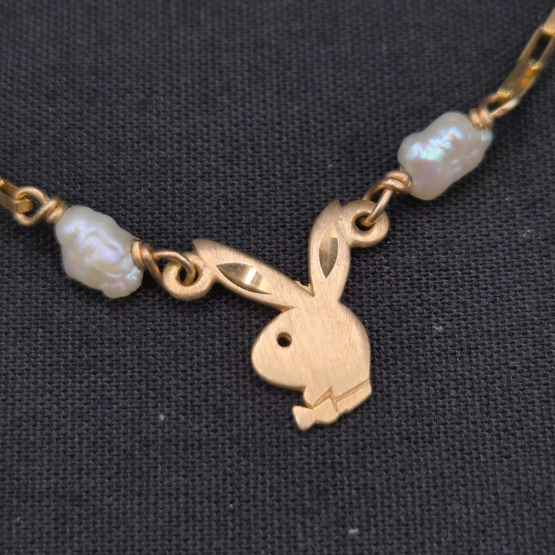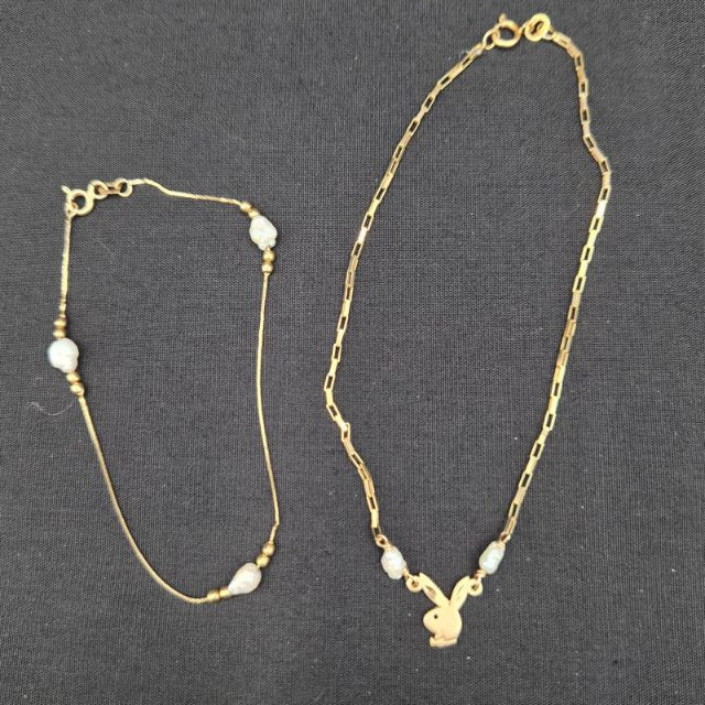 Lot # 90 - Playboy Bunny 14k Gold Rice Pearl Bracelet & Petite 14k Italy Bracelet