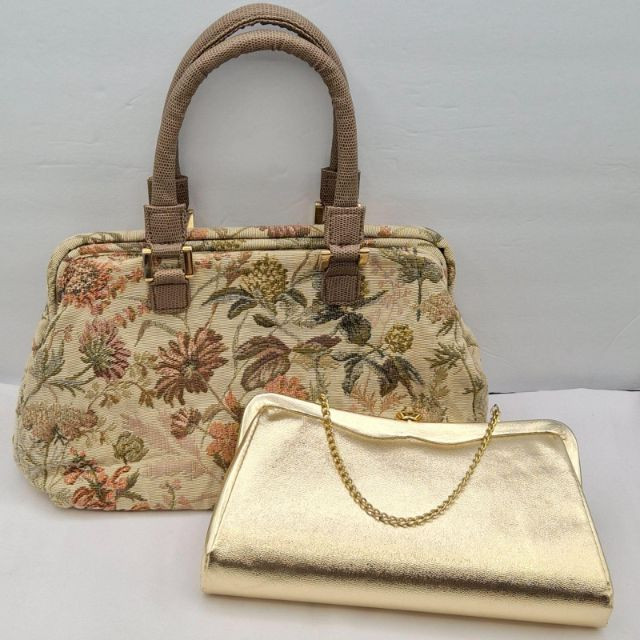 Lot # 97 - Maryann Rosenfeld Tapestry Bag & Textured Gold Shimmer Clutch Purse
