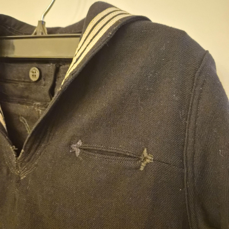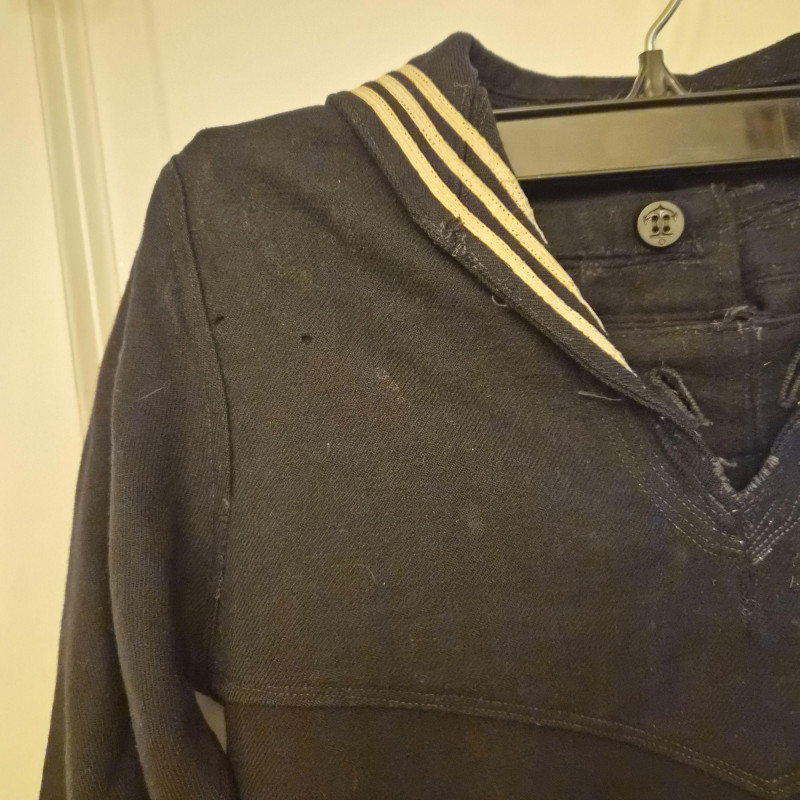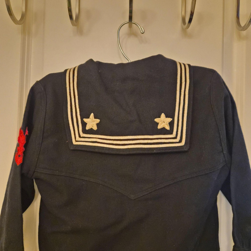 Vintage sailor-style two-piece outfit for a toddler boy, crafted in wool and sized 6.