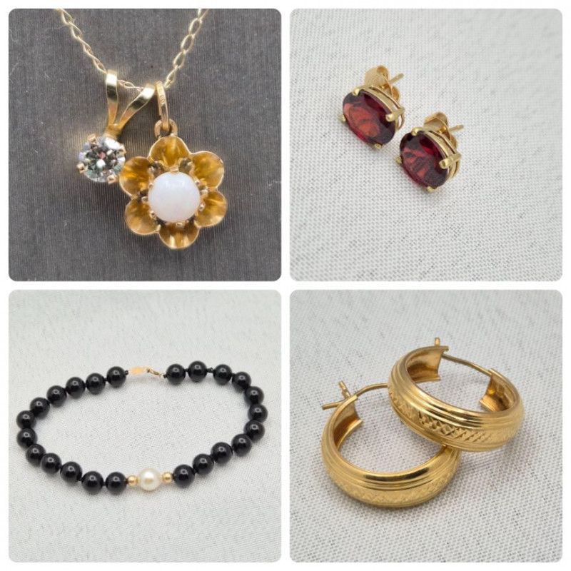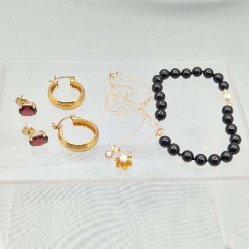 Lot # 108 - 10k Gold Hoops, Dainty 14k Necklace & Gemstone Accents