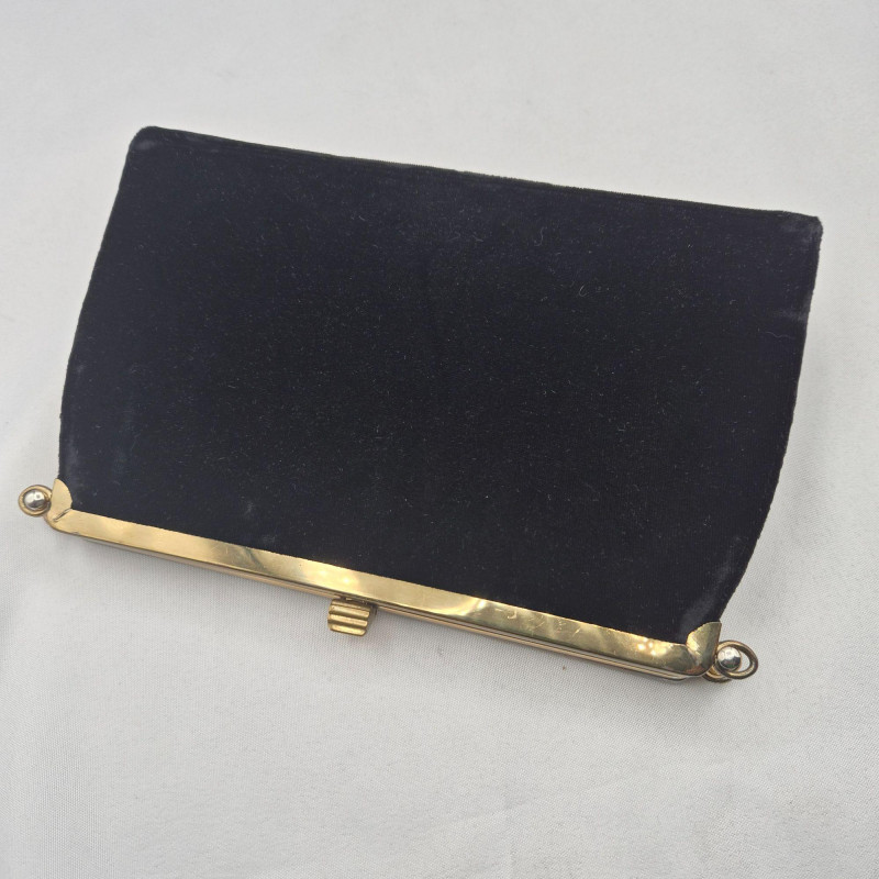A stylish assortment of 1950s clutch and handled purses in classic tones of black and deep navy, showcasing the elegance and variety of mid-century fashion. This lot includes: Whether you're curating a retro wardrobe or building a fashion archive, this lot offers timeless appeal and authentic mid-century style.