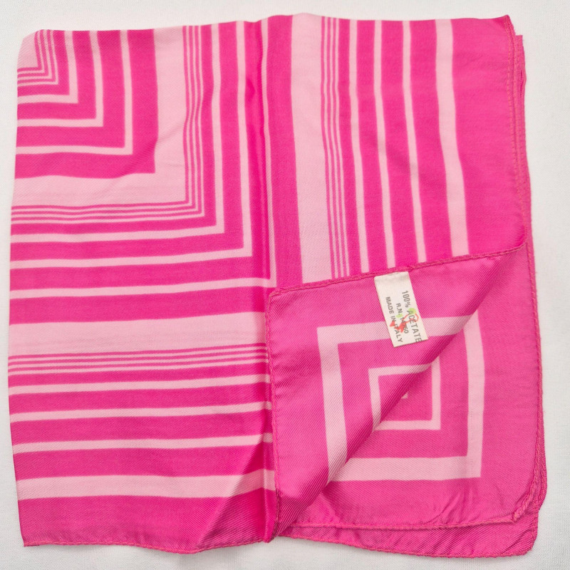 A lively assortment of retro women’s scarves in silk, cotton, and select polyester, offering a colorful mix of patterns, textures, and wearable sizes. This curated lot includes: