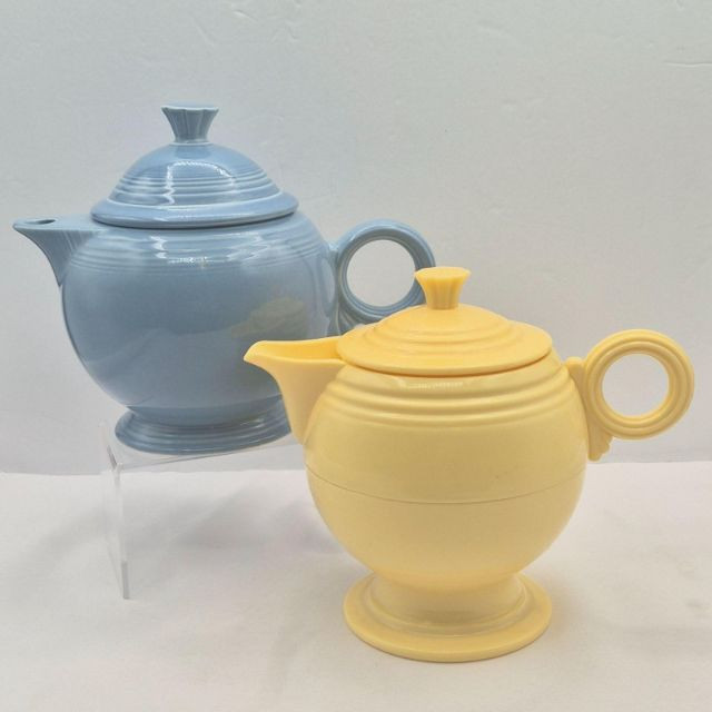 Lot # 128 - Fiesta Tea Pots Duo Periwinkle Pottery & Yellow Thermo‑Plastic