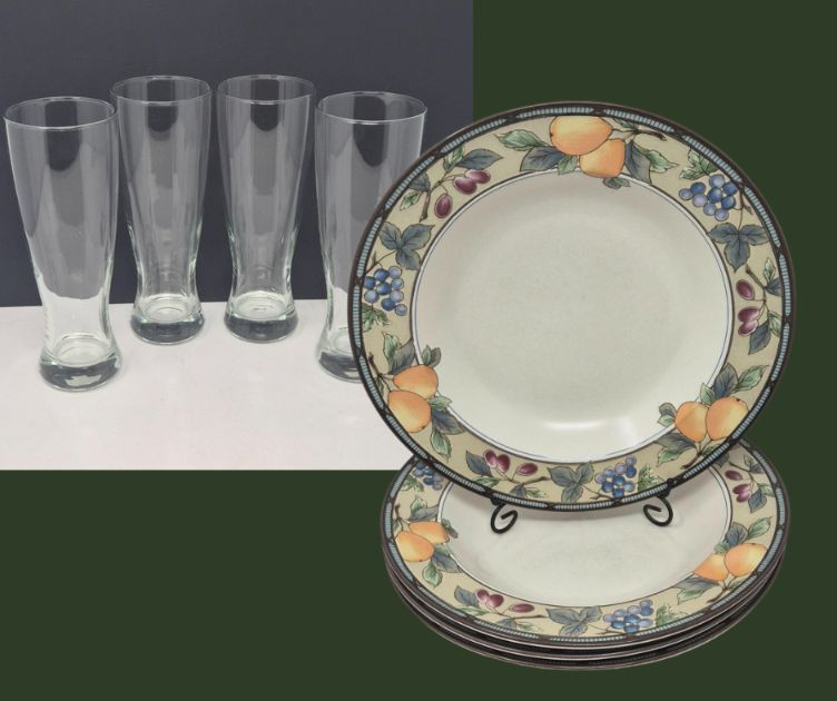 Lot # 108 - Pasta Bowls & 9 Inch Tall Beer Glasses - Set of 4