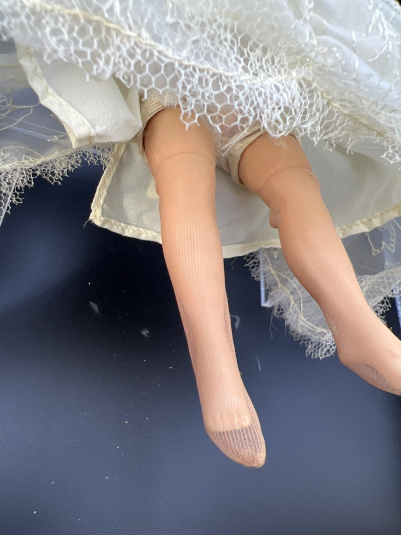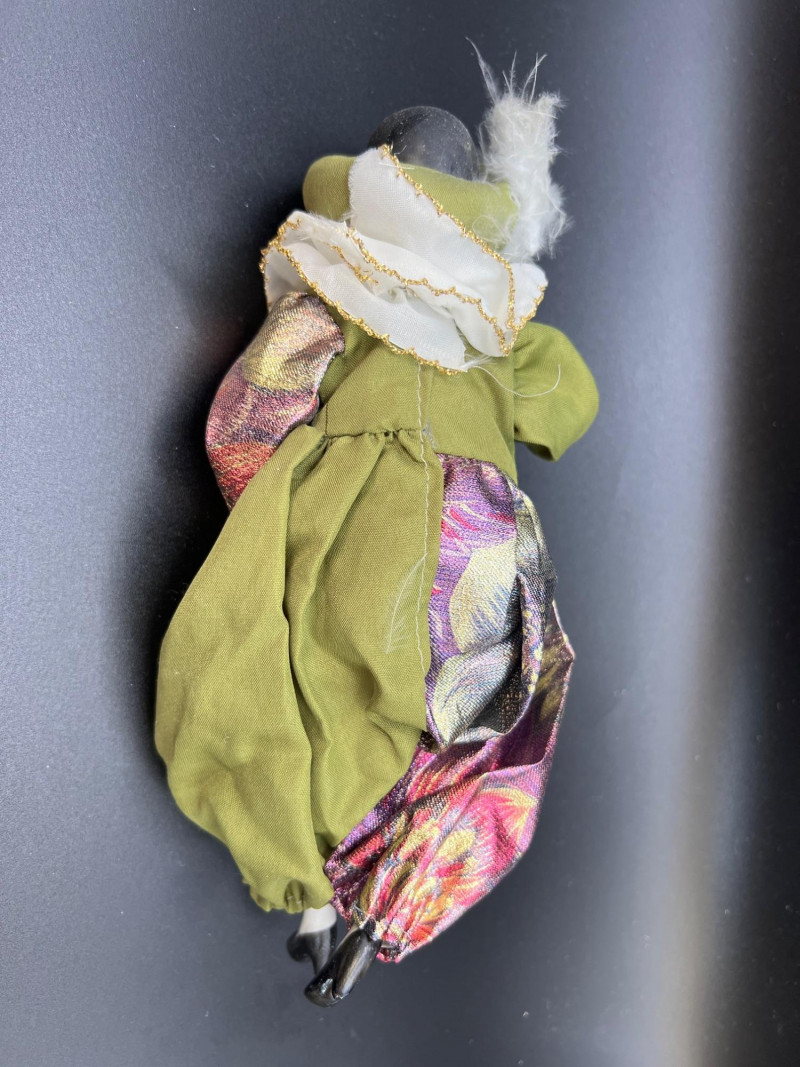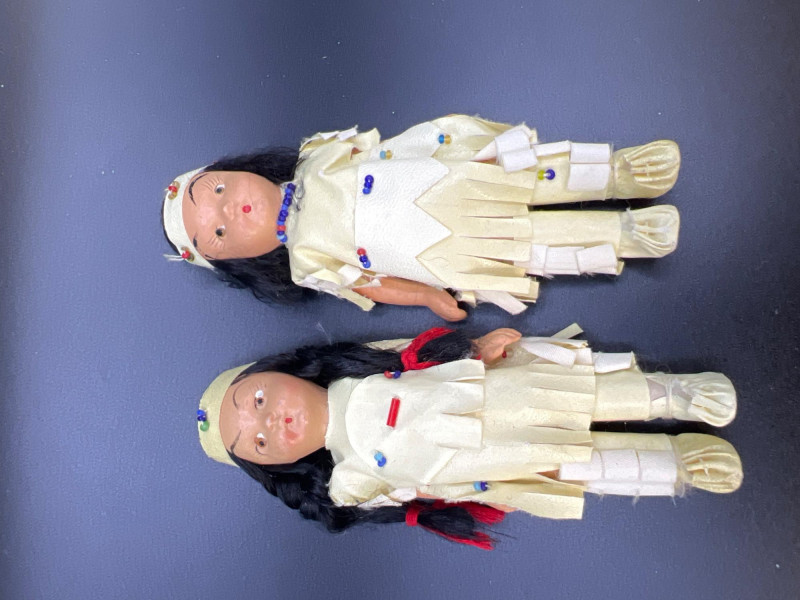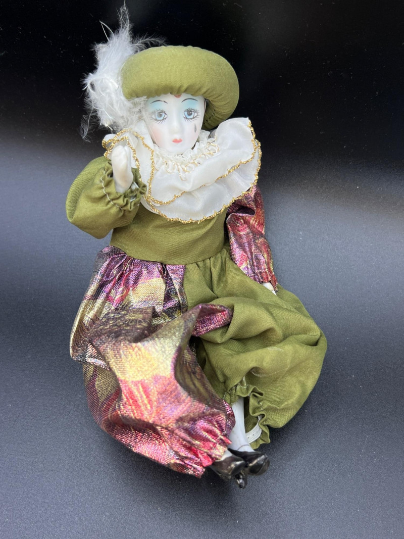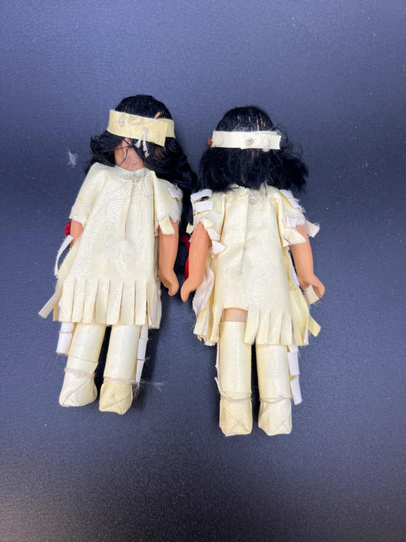 Charming mixed doll collection featuring four distinct styles and eras: Avon Victorian Doll 6" tall with stand – A classic Avon collectible dressed in period‑inspired attire with bonnet and ribbon detailing. Madame Alexander Jointed Cissette Wedding Doll - 6" tall – Beautifully costumed in a lace wedding gown with pearl accents; jointed body typical of the Cissette line, known for its elegance and fine facial painting. Two Composite Indian Dolls (Made in Japan) – Vintage hand‑painted figures in traditional attire with beadwork and fringe. Mid‑century Japanese export pieces with expressive faces and cultural costume detail. Pierrot Doll – A theatrical figure in colorful costume with painted face, capturing the whimsical, melancholy charm of the classic Pierrot character. A delightful, eclectic grouping ideal for collectors of vintage dolls, international figures, and character‑themed display pieces.