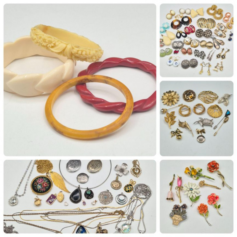 Pendants, Pins, Earrings & More from Multiple Eras and Makers: A vibrant, eclectic assortment of fashion jewelry spanning multiple decades, packed with personality and discovery. This lot is overflowing with surprises of pendants, pins, earrings, bracelets, necklaces, and more—ranging from delicate to bold and classic.