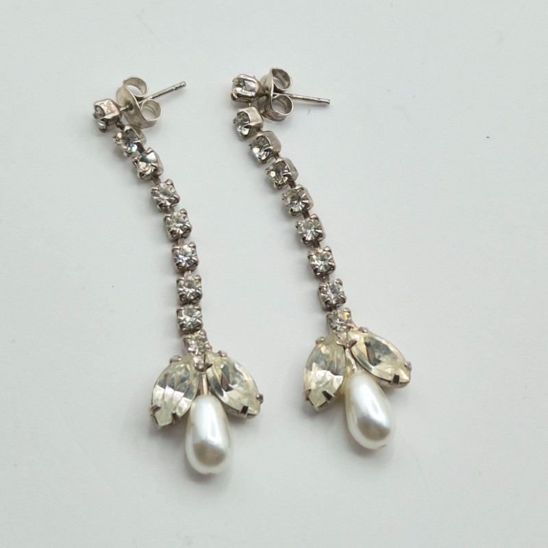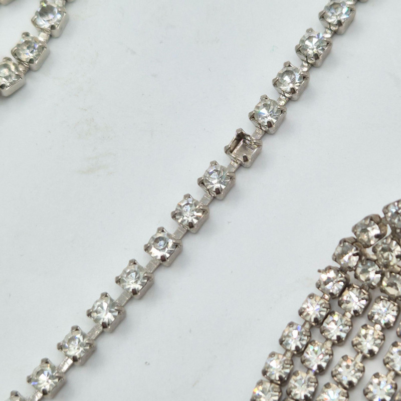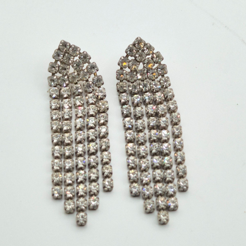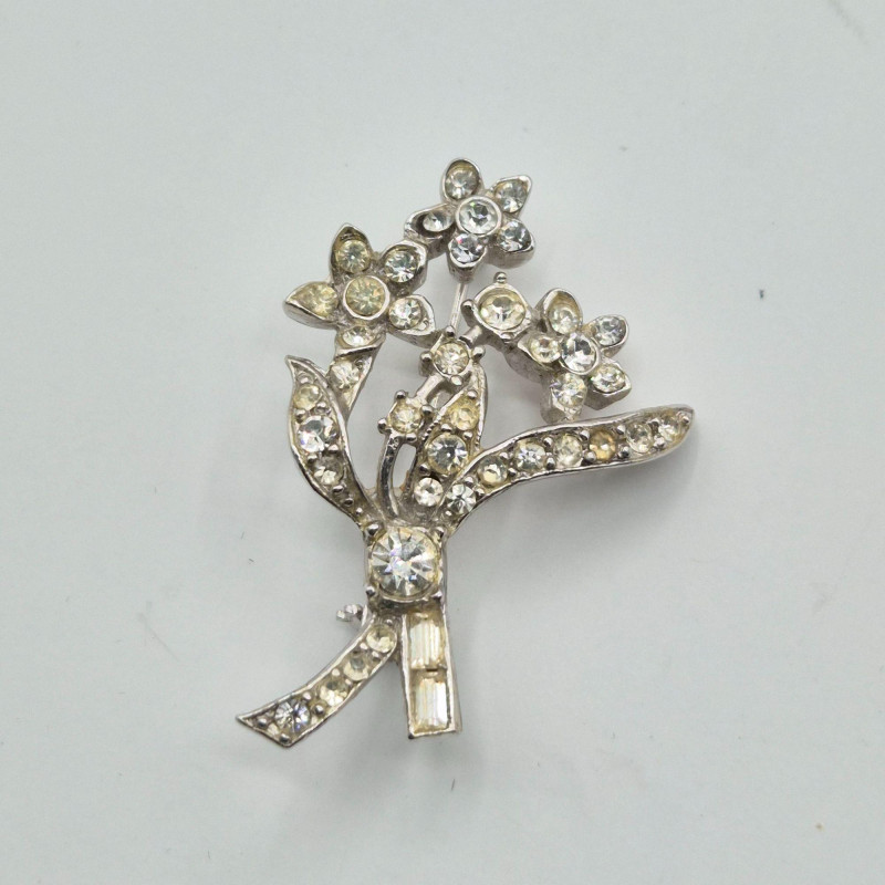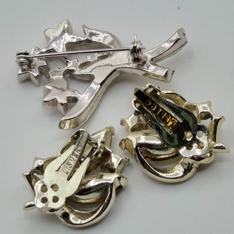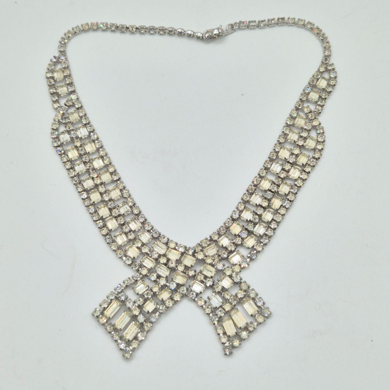 A dazzling 1950s clear rhinestone collection filled with classic mid‑century glamour. This curated assortment includes chokers, pins, earrings, and a ring—each piece showcasing the era’s love of bright, icy sparkle. The lot includes: A lovely, wearable, and collectible grouping for vintage jewelry lovers, costume jewelry collectors, or anyone who appreciates the timeless brilliance of mid‑century rhinestones.