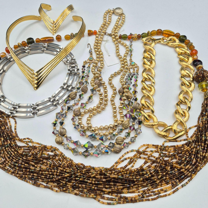 A colorful, style‑spanning assortment of fashion jewelry sets, beaded necklaces, and bold bangles, perfect for collectors, crafters, or resellers looking for variety and visual punch. A fun, diverse grouping with plenty of wearable pieces and resale potential.