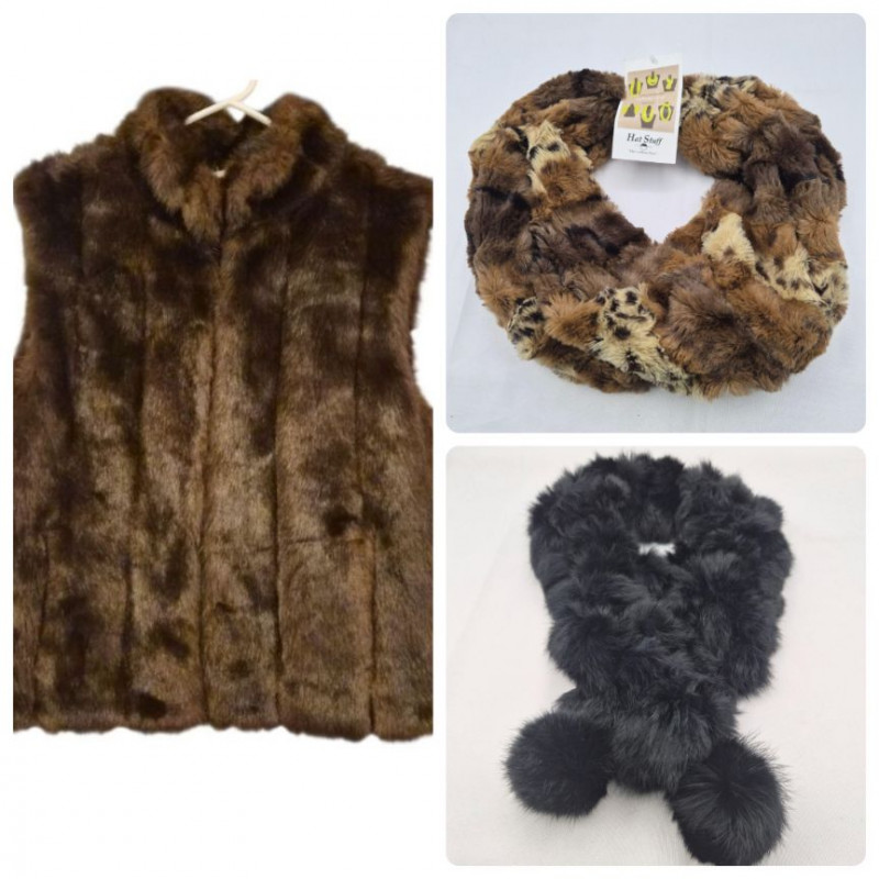 Lot # 47 - (NWT) Faux Fur Fashion Vest and Two Scarves