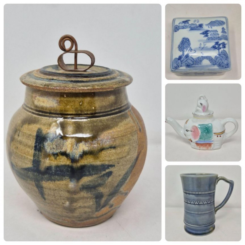 A delightful mixed pottery assortment featuring four unique and display‑worthy pieces, each with its own character and craftsmanship.