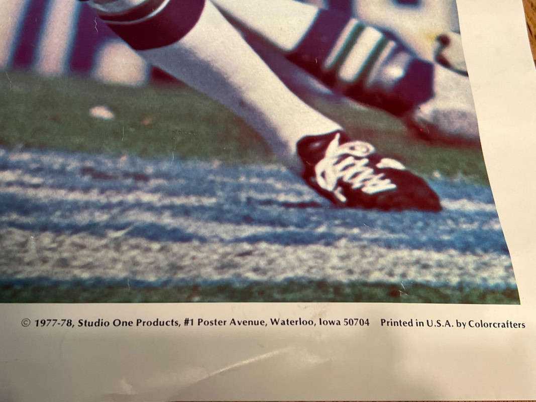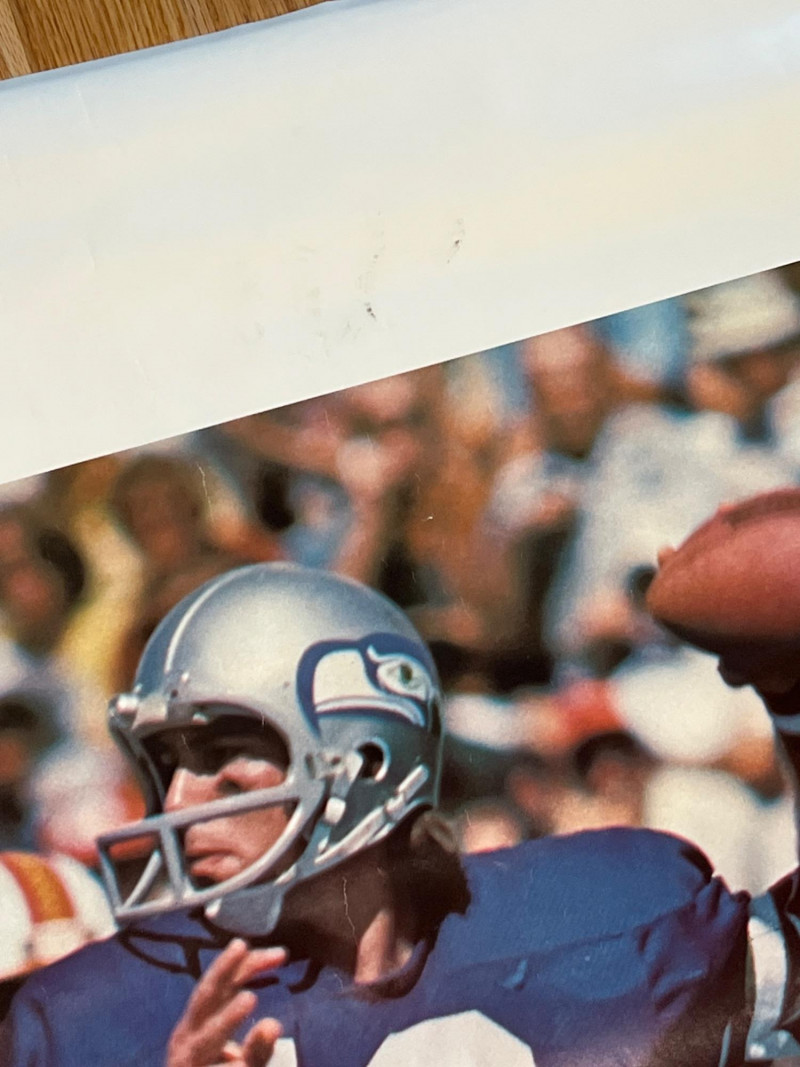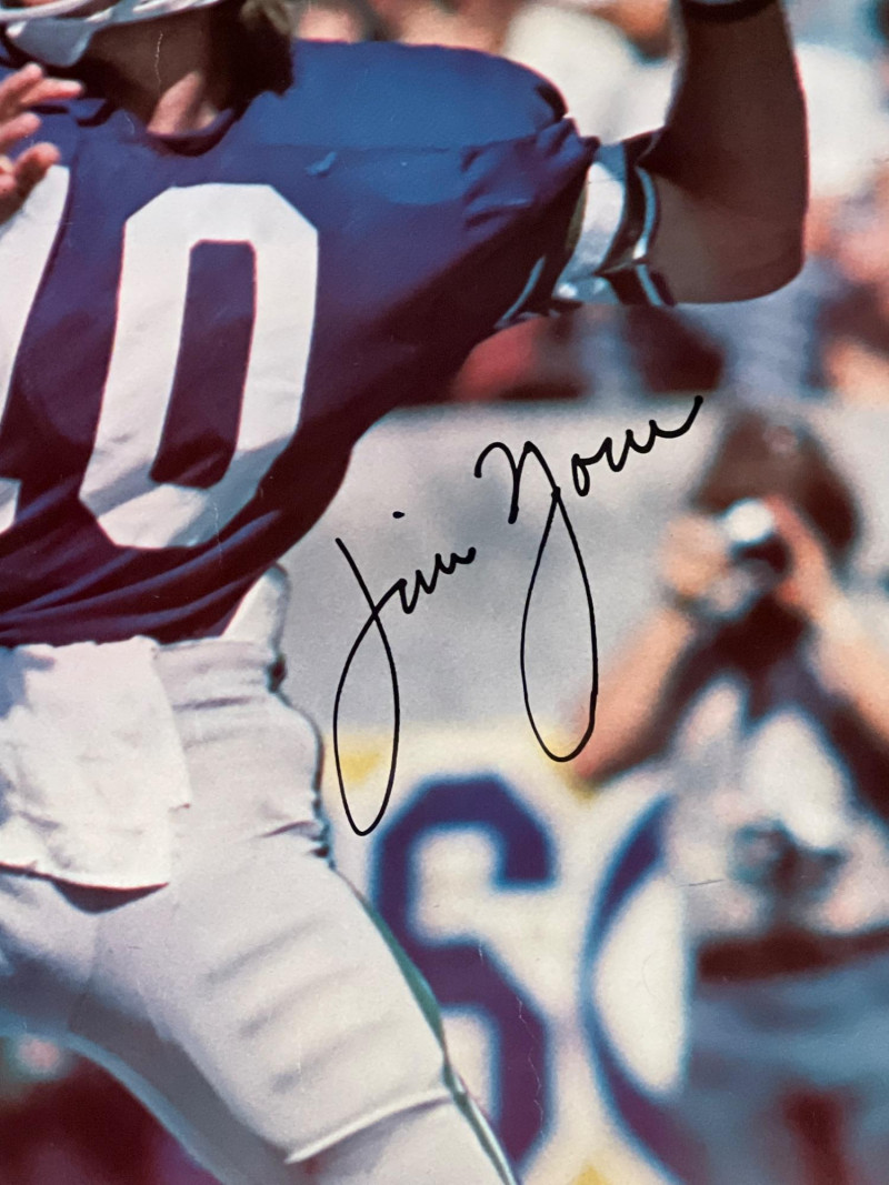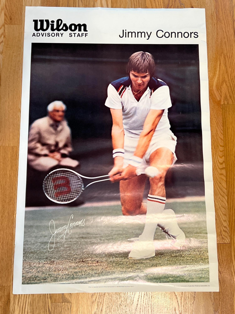 A pair of vintage sports posters featuring two iconic athletes from different arenas: Legacy Seahawk, NFL quarterback, Jim Zorn and tennis champion Jimmy Connors. Each poster showcases dynamic action photography from their competitive prime and includes the athlete’s printed facsimile signature. Zorn poster (36"h x 24"w) captures a classic passing stance in full uniform. Connors poster (34"h x 23"w) highlights his powerful court presence in a Wilson‑branded design. Ideal for sports collectors, fan cave décor, or anyone building a multi‑sport display. Condition consistent with age and prior handling. See pictures.