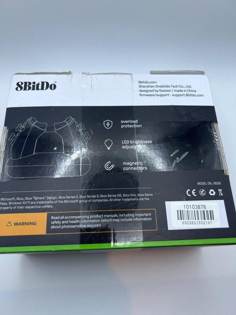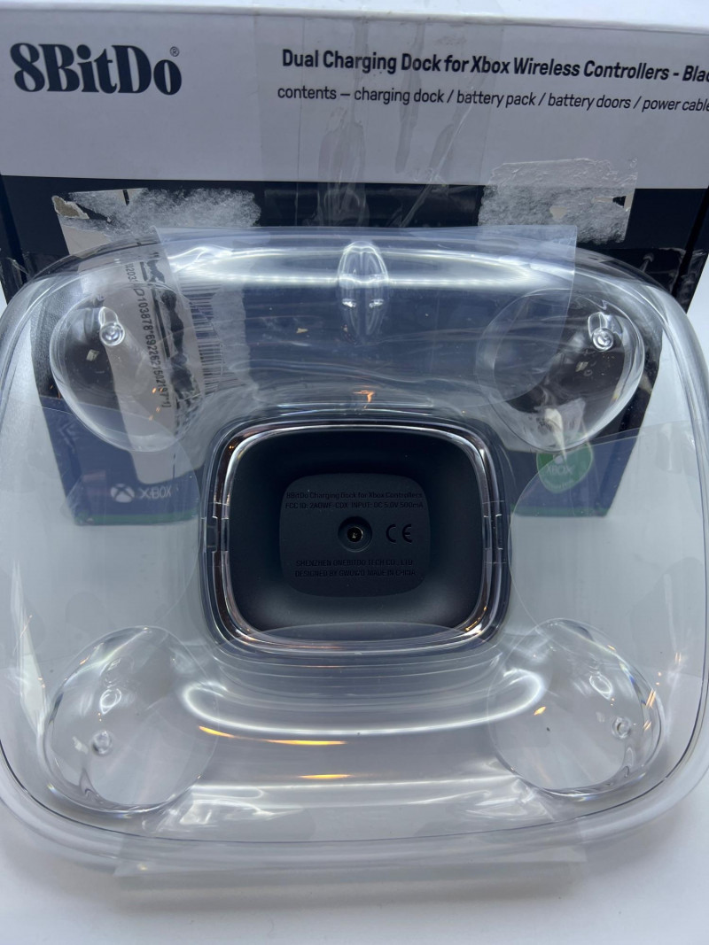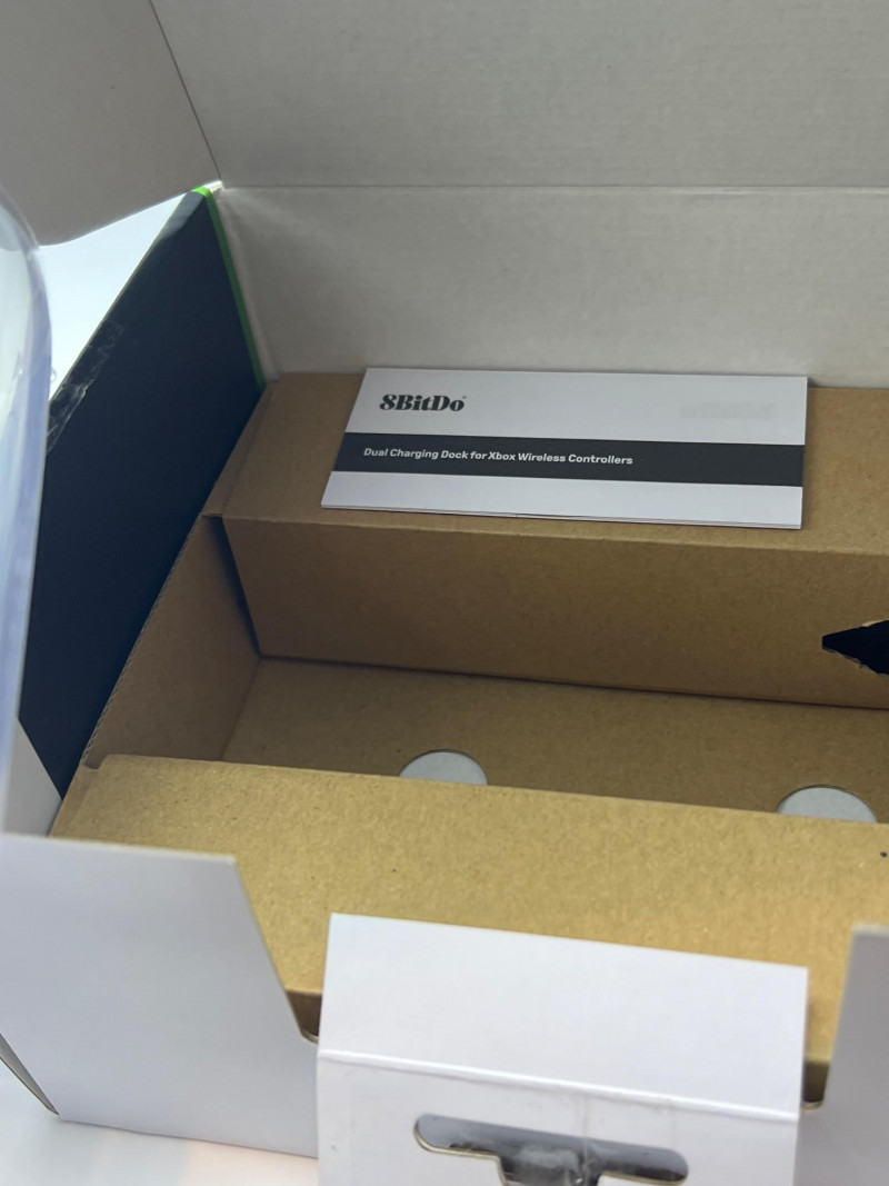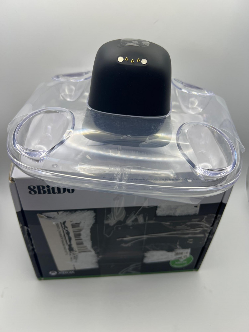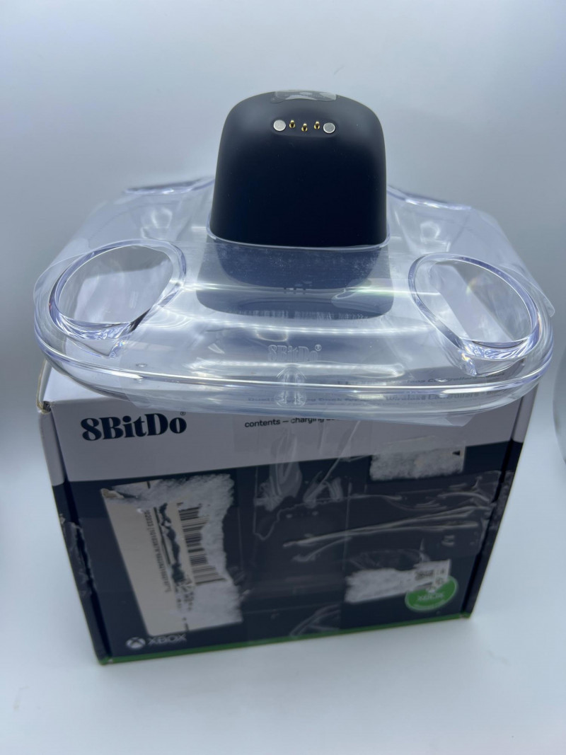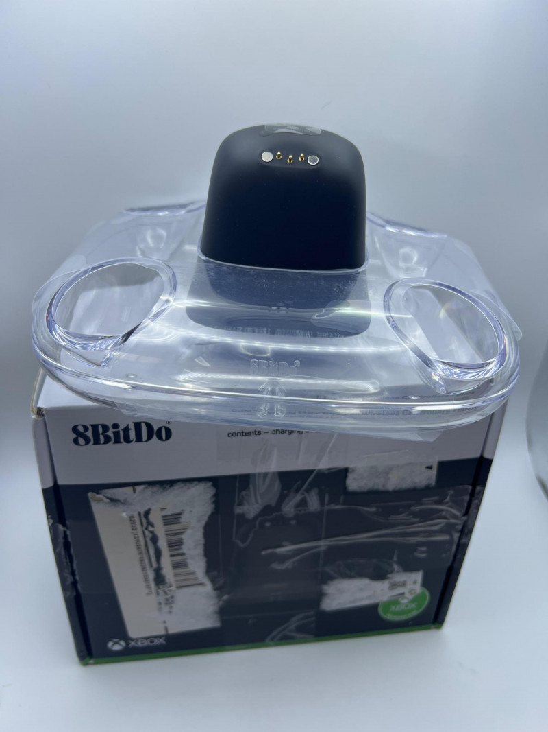 A new, boxed 8BitDo charging dock designed for Xbox controllers, featuring magnetic contact points for secure drop‑in charging. Compatible with Xbox Series X|S and Xbox One wireless controllers, this officially licensed accessory provides a stable, compact charging solution with a clean display profile. Includes the charging cradle and original packaging. Condition is new and unused.