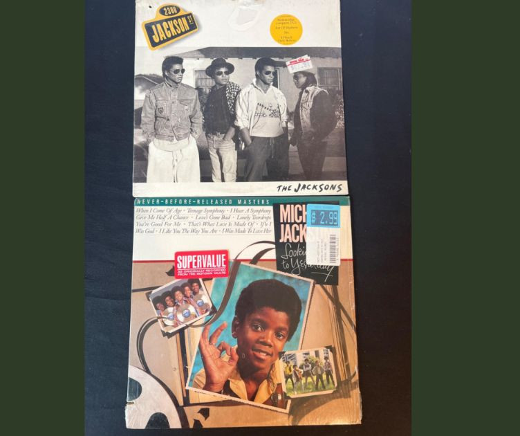 Two‑album Jackson Family vinyl lot featuring Michael Jackson’s Looking Back to Yesterday and The Jacksons’ 2300 Jackson St. Looking Back to Yesterday compiles rare and previously unreleased Motown‑era recordings from Michael and the Jackson 5, while 2300 Jackson St represents the group’s final studio album. 2300 Jackson Street is sealed. Looking Back to Yesterday has a visual grade of near mint. Cardboard cover has common wear for its age with a groove cut out in one corner.