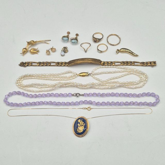 A charming mixed lot of gold-filled, sterling, Lenox, and unsigned vintage jewelry, offering a blend of wearable classics and collectible accents. This curated assortment includes: This lot offers a lovely mix of mid-century charm, soft pastels, and classic gold-filled warmth.
