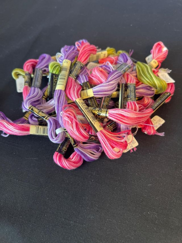 Also included is a bundle of embroidery thread skeins in assorted colors.